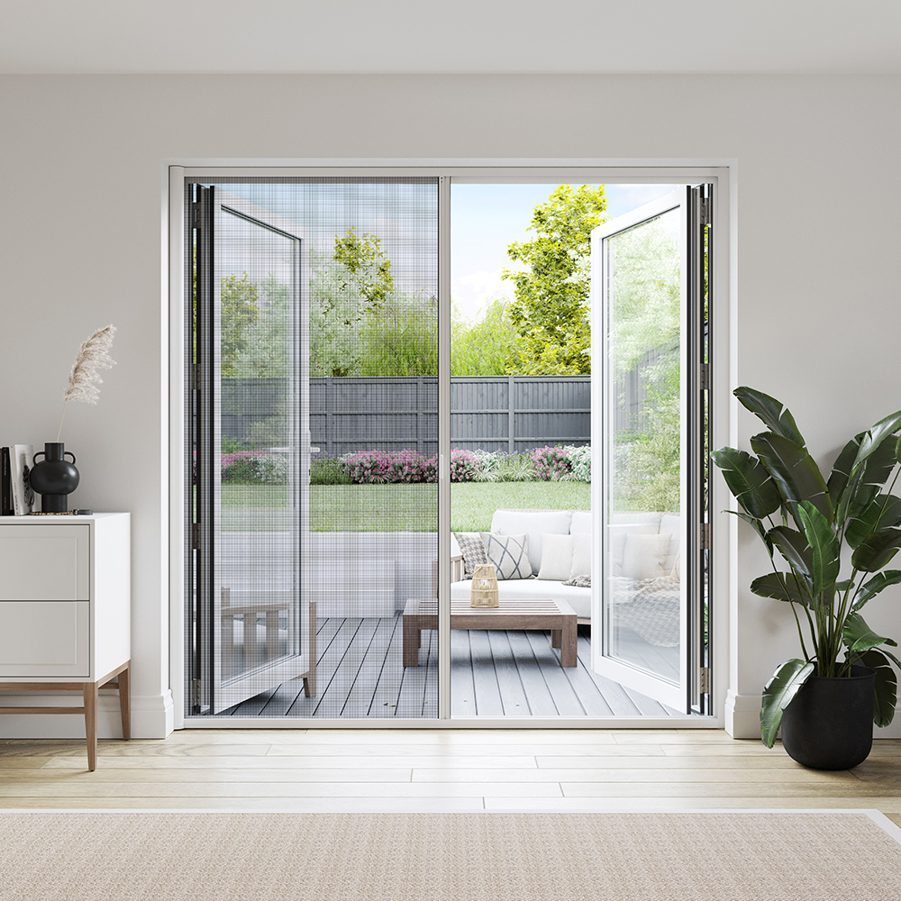 We offer a variety of sizes of fly screens including options for single and double doors, Velux windows, and standard windows. Available in black, white, and grey, our products feature a high-quality aluminium frame and a durable fine mesh screen in a stylish pleated design.